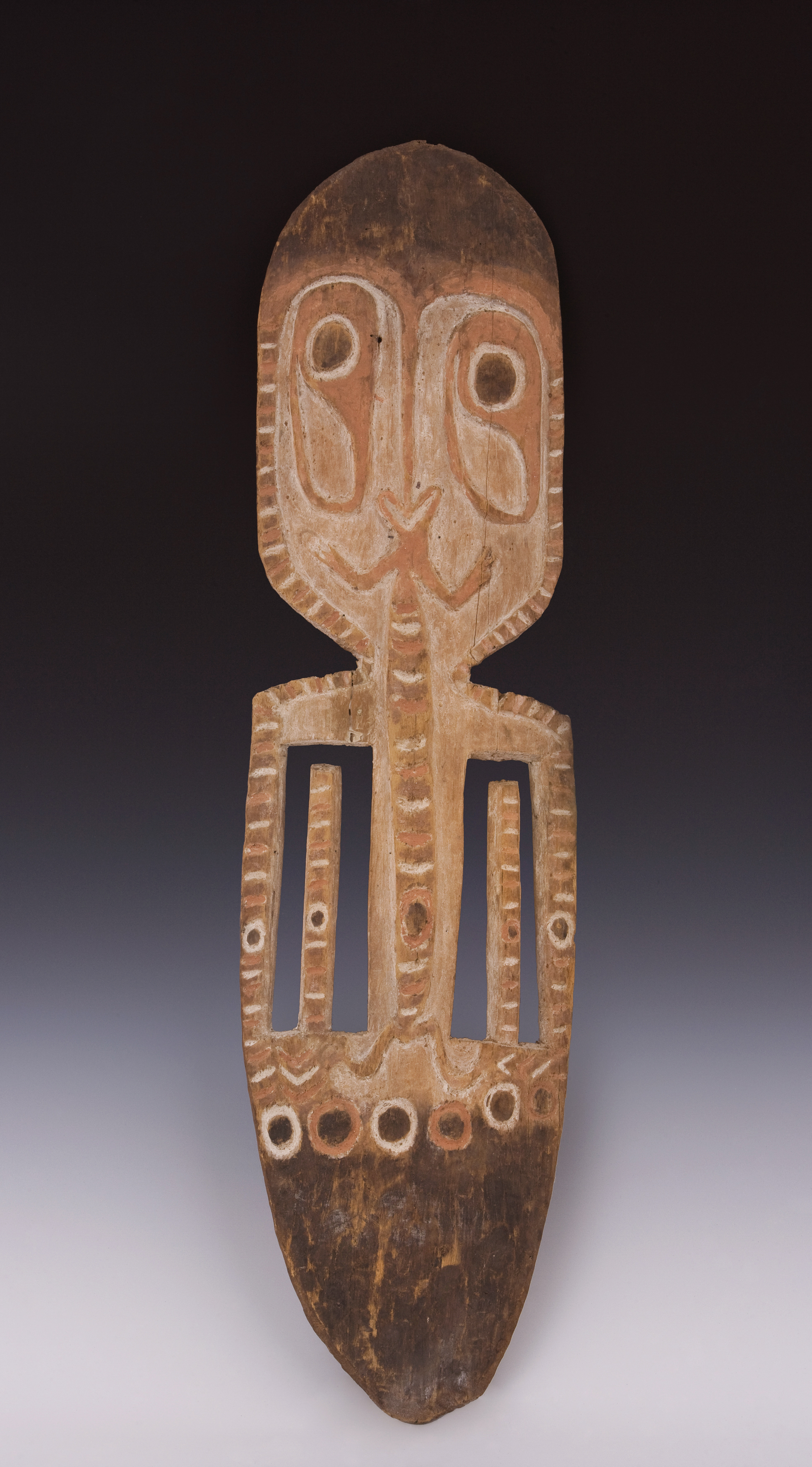 Pannello cerimoniale, Papua, Nuova Guinea, altezza 88 cm, legno leggero dipinto (10.88)