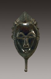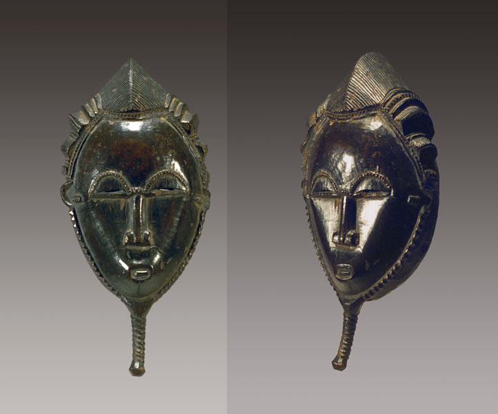 Maschera, Costa D'Avorio, altezza 28 cm, legno duro a patina nera laccata (04.216)