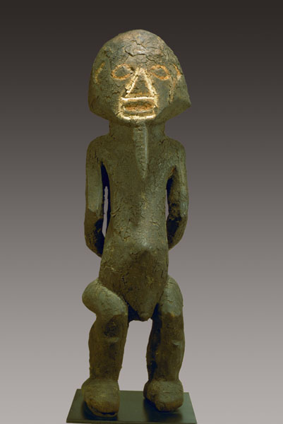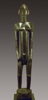 Figura maschile, Nigeria, altezza 93 cm, legno ricoperto con una densa patina crostosa di colore nero sul corpo e bianca su viso (04.394)