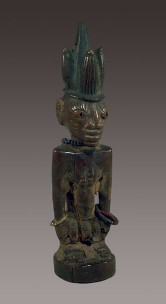 Figura di antenata, Nigeria meridionale, altezza 72 cm, legno duro a patina naturale brillante (99.330)