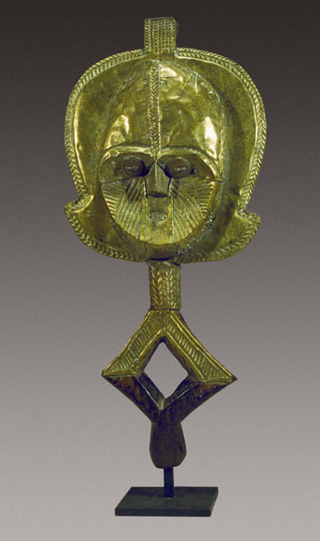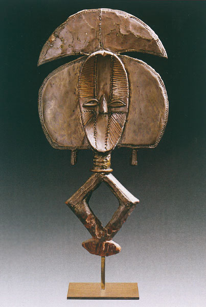 Figura di reliquiario, Gabon meridionale, altezza 39 cm, legno duro ricoperto nella parte anteriore con lamine d'ottone (04.376)