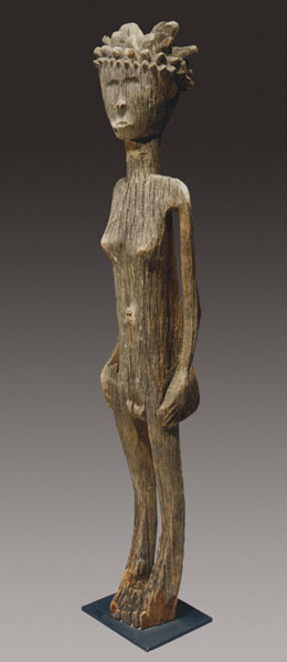 Figura femminile, Madagascar, regione del Sud-Ovest, altezza 122 cm, legno leggero con erosione diffusa (04.377)