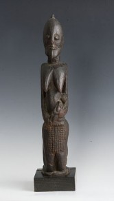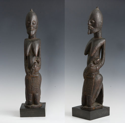 Figura inginocchiata con bambino, Mali, altezza 47 cm, legno duro con patina di resina sacrificale a trasudazione continua (05.309)