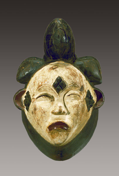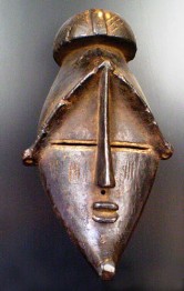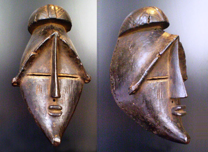 Maschera, Gabon meridionale, altezza 36 cm, legno leggero dipinto (01.167)