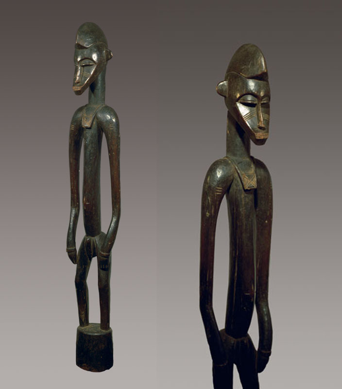 Grande figura maschile Deble, Costa D'Avorio, altezza 112 cm, legno duro a patina scura brillante (95.317)